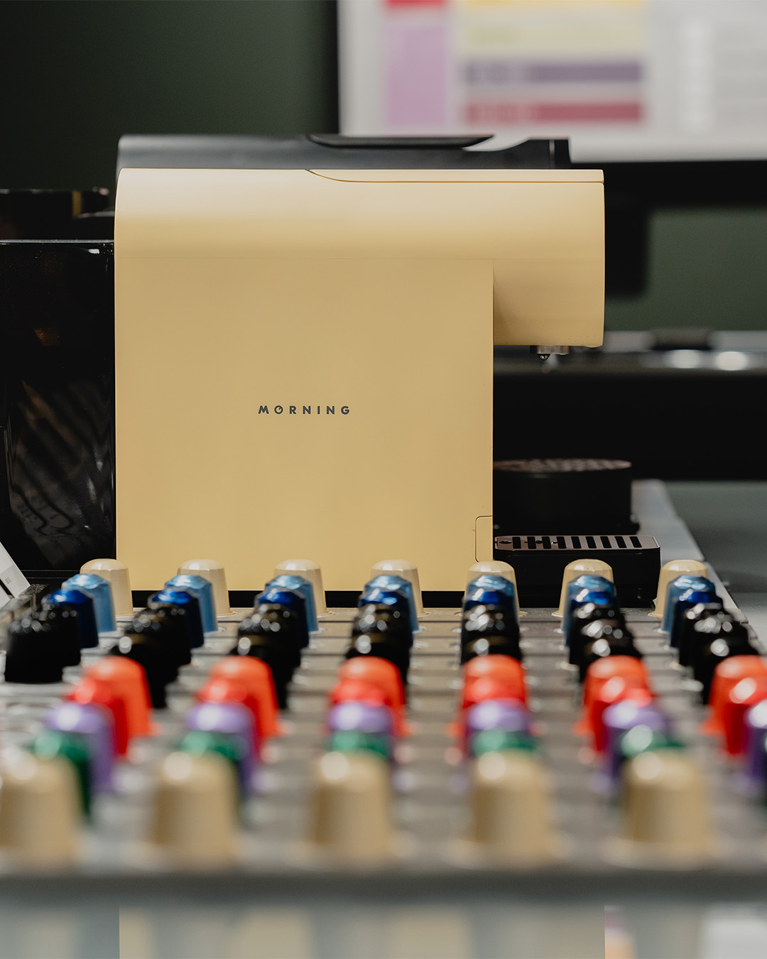 At the new store, visitors can experience the MORNING Index, a unique flavour-based system that organises coffee capsules by taste profile rather than brand or origin. Inspired by the official coffee taster’s flavour wheel, this design-led concept helps customers discover their preferred flavour notes — whether bright and fruity, rich and chocolatey, or smooth and creamy. The display transforms coffee shopping into a sensory experience, making it simple and intuitive for anyone to find their perfect cup.